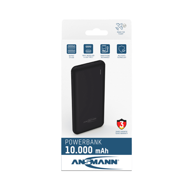 Die ANSMANN Powerbank 10.000 mAh PB212 schwarz ist ein kompakter, handlicher und mobiler Zusatzakku. Inkl. Micro-USB-Kabel.