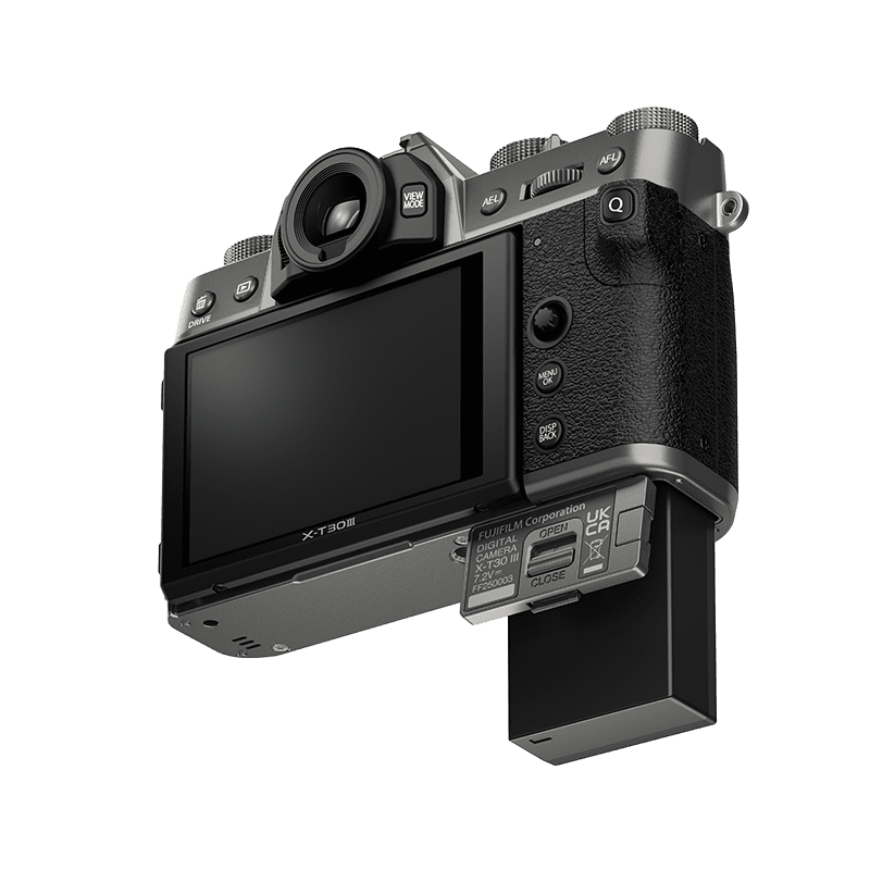 Im Herzen der X-T30 III arbeitet der rückwärtig belichtete 26,1-Megapixel X-Trans CMOS 4 Sensor zusammen mit dem Hochgeschwindigkeitsprozessor X-Prozessor 5. Diese Kombination sorgt für hohe Bildqualität und Energieeffizienz und ermöglicht im Energiesparmodus bis zu 425 Aufnahmen pro Akkuladung.