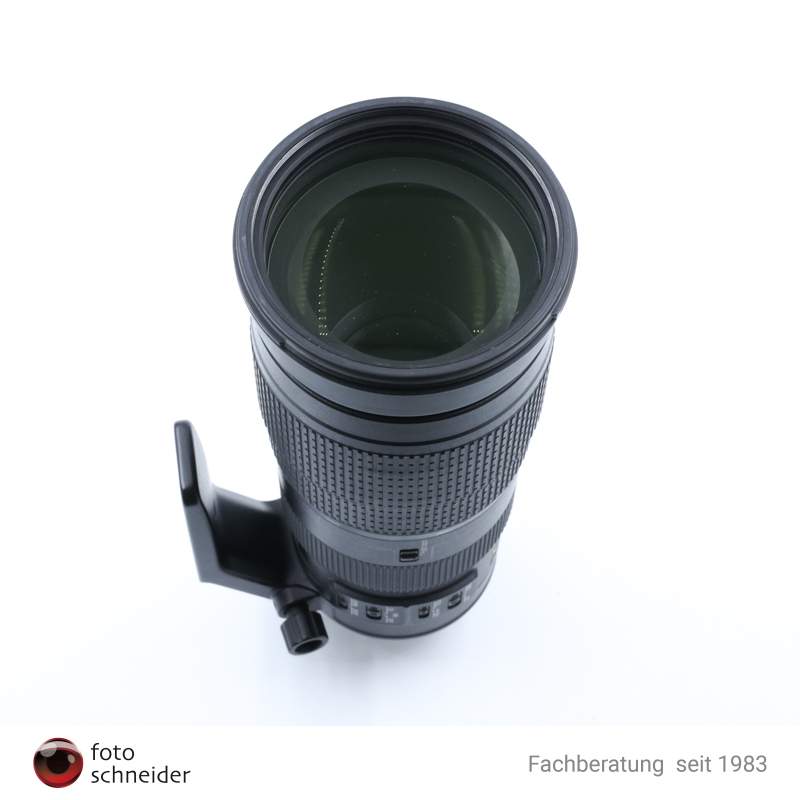 Das Objektiv befindet sich in einem guten Gebrauchtzustand, minimale Gebrauchsspuren am Gehäuse vorhanden, Staubeinschlüsse in der Linse sichtbar, leichte Kratzer an der Linse