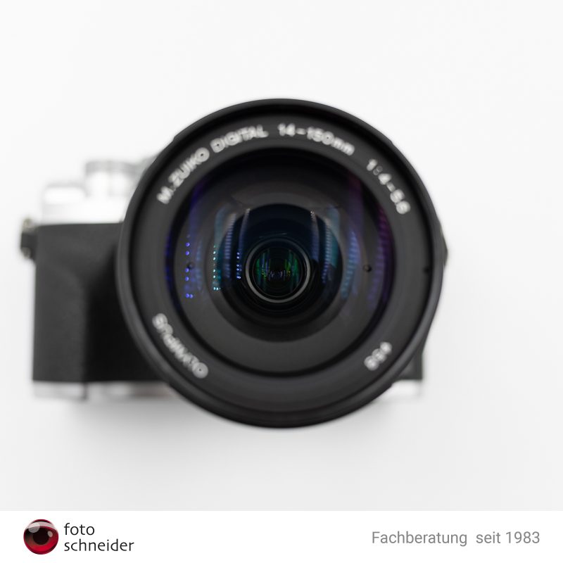 Lieferumfang: Kamera, Objektiv 14-150, vorderer Deckel, Ladeschale + Kabel, Akku (Original Olympus) , Riemen, Bedienungsanleitung, KEINE Originalverpackung