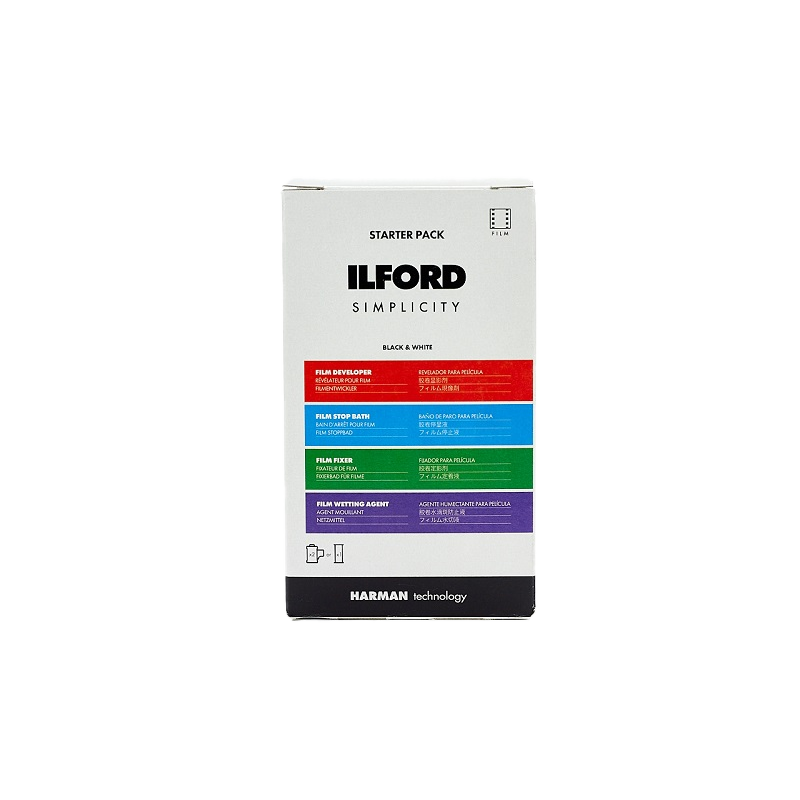 Das ILFORD SIMPLICITY Starter Pack liefert alle Fotomaterialien, die Sie benötigen, um Ihre eigenen Schwarz-Weiß-Filme zu entwickeln. Jedes Sachet enthält die passende Menge für zwei 35 mm-Rollen oder eine 120-Rolle, wenn ein 2-Spulen-Entwicklungsbehälter mit 600 ml verwendet wird. Enthalten sind ILFORD ILFOSOL 3 Filmentwickler, ILFORD ILFOSTOP Abstoppbad, ILFORD RAPID FIXER und ILFORD ILFOTOL Netzmittel.