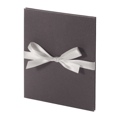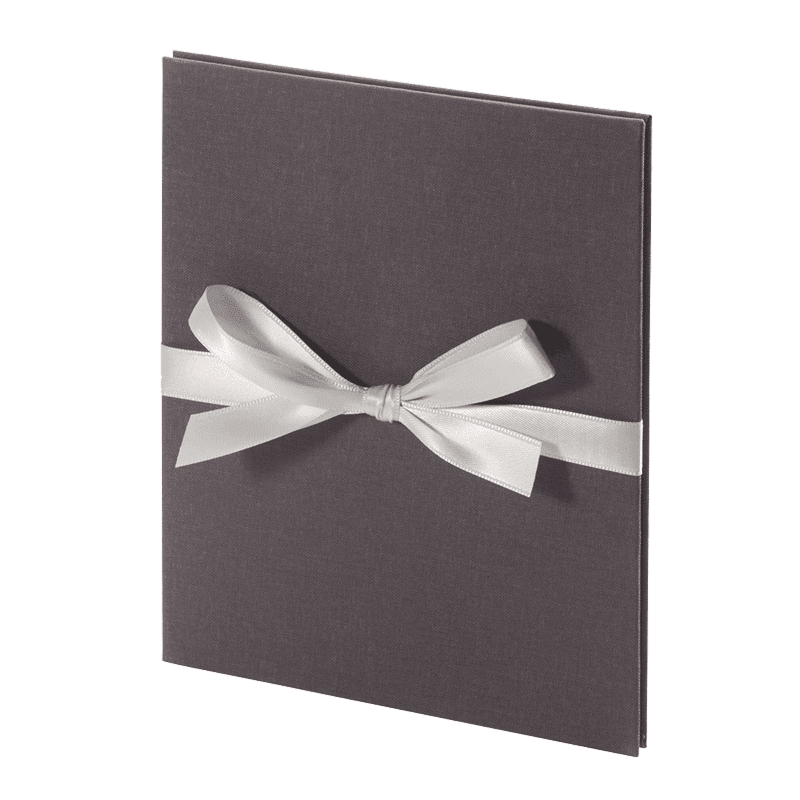 Mit edler Seidenschleife. Sie verschließen Ihr Leporello-Album mit einer schmuckvollen Seidenschleife. Die Alben sind mit echtem Leinenstoff eingebunden und in vier Farbtönen erhältlich: Schwarz mit roter Schleife, Taupe mit weißer Schleife, Dunkelgrau und Dunkelblau mit hellgrauem Dekoschleifband,  Creme, Khaki  und Beere sowie Rot mit gleichfarbiger Schleife.