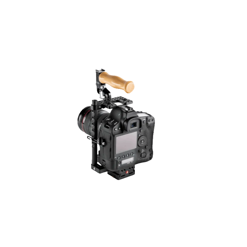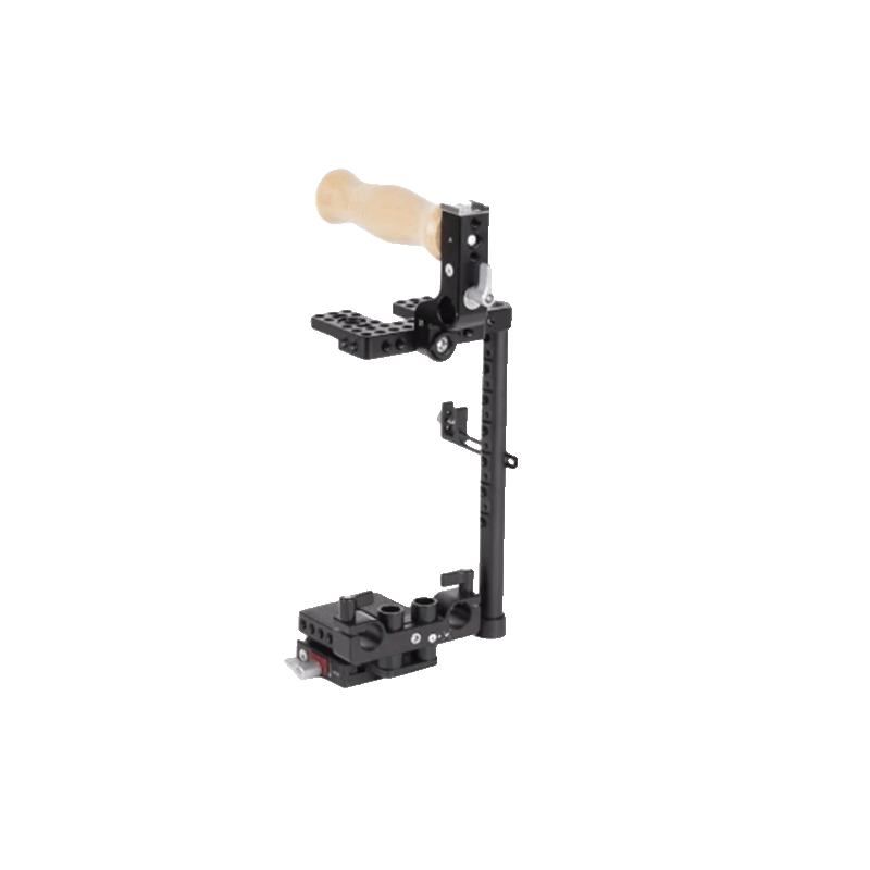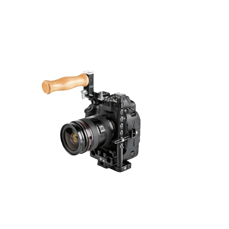 Der Käfig enthält einen umkehrbaren oberen Griff, der bei Verwendung eines XLR-Adapter oberhalb des Objektivbereichs neu positioniert werden kann. Beim Verstauen in einer Tasche kann der Griff auch heruntergeklappt werden und sogar auf die vertikale 15 mm lange Schiene auf der linken Seite als zweiten Griff umgebaut werden. Am Griff ist eine Halterung für einen Zubehörschuh und eine 15-mm-Rohrschelle zum Befestigen von Wooden Camera Mount Kits integriert.