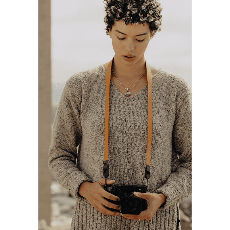 Ein hochwertiger Riemen aus feinem Rindsleder¹ geht nahtlos in schlanke Anchor Link-Schnellverschlüsse über. Diese Verbindungen sind eine verfeinerte Version des bekannten Peak Design Systems – sicher, unauffällig und kompatibel mit allen anderen Gurten des Herstellers. Über eine dezente Aluminium-Zubehörschlaufe lässt sich ein zusätzlicher Anchor anbringen, sodass der Gurt kompakt am Körper verstaut werden kann, wenn die Kamera nicht getragen wird.