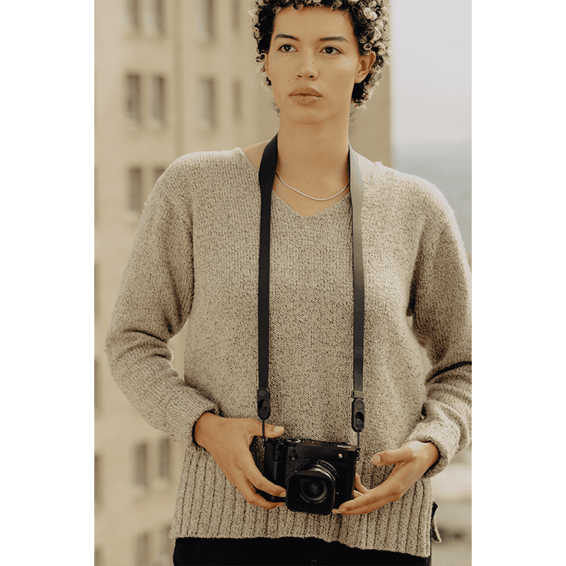 • Moderner, minimalistischer Kameragurt aus hochwertigem Leder – stilvoll und zeitgemäß im Design