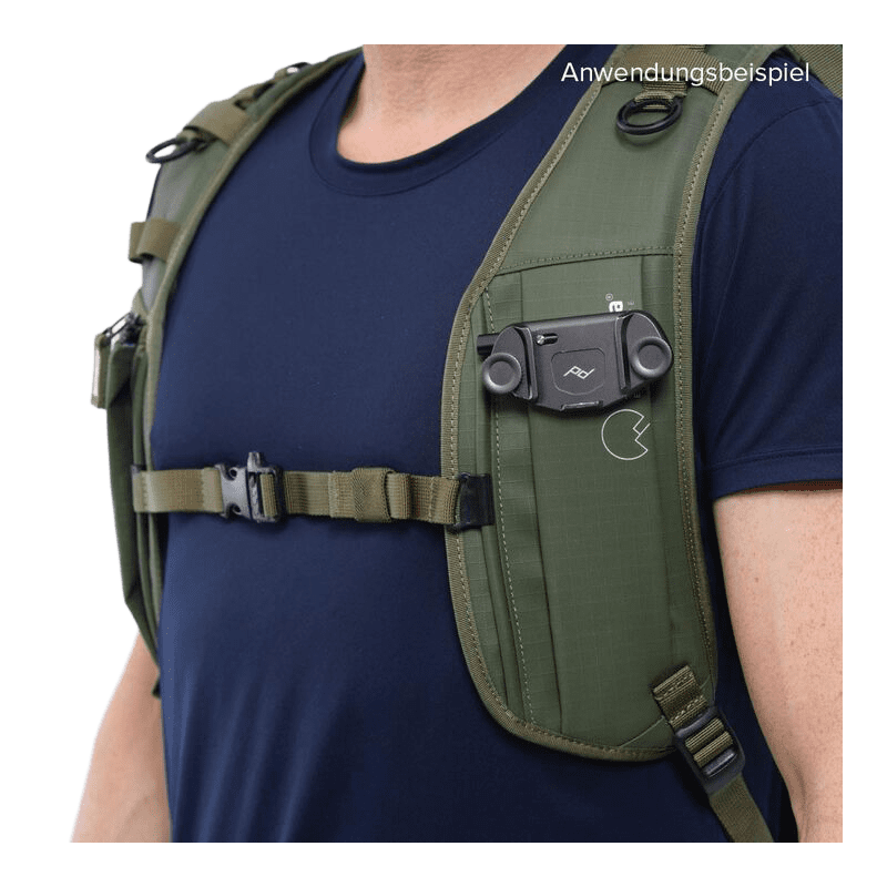 Der Capture Strap wurde für Kameraleute entwickelt, die eine tragbare Schnellwechselhalterung wie den Capture Clip und andere ähnliche Kameraclips verwenden. Dieser Schultergurt ersetzt den linken Schultergurt des Rucksacks der Shimoda Action X-Serie. Der Capture Strap zeichnet sich durch zwei Besonderheiten aus. Erstens befindet sich der Befestigungsstreifen oberhalb des Trageriemens, was bedeutet, dass sich die Gurtpolsterung zwischen Ihrem Körper und dem Kameraclip befindet, so dass der Clip niemals Ihren Körper berührt (oder sich in ihn einschneidet). Dies führt zu einem unübertroffenen Tragekomfort während des ganzen Tages mit einem Kameraclip. Zweitens lässt sich der Befestigungsstreifen in der Höhe um 20 cm verstellen, so dass die Ersteller eine perfekte Passform wählen können, die zur Körpergröße des Benutzers passt. Darüber hinaus macht der Befestigungsstreifen das Anbringen eines Kameraclips sehr viel einfacher, da er weder sperrig noch zu dick ist.
