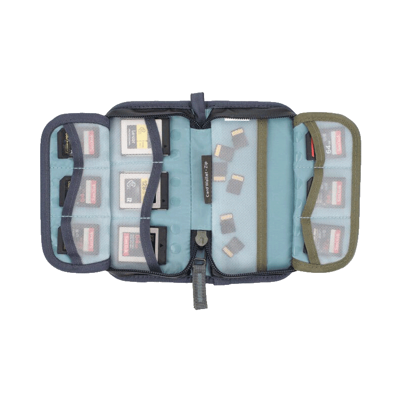 Die Shimoda Zip Card Wallet wurde entwickelt, um Ihre Speicherkarten zu transportieren, zu sichern und zu schützen. Sie verfügt über eine gepolsterte EVA-Schaumstoffhülle zum Schutz vor Stößen und ein ausklappbares Design, das eine schnelle Verwendung ermöglicht. Die Wallet bietet Platz für so viele Karten, wie Sie auf Reisen benötigen. Die Karten werden in durchsichtigen TPU-Hüllen mit einer Verstärkung aus gewebtem Netzstoff aufbewahrt, die dafür sorgt, dass die Hüllen nicht reißen. Mit einem hochwertigen Clip-in-Band können Sie die Wallet an Ihrem Rucksack oder an der Gürtelschlaufe Ihrer Hose befestigen.