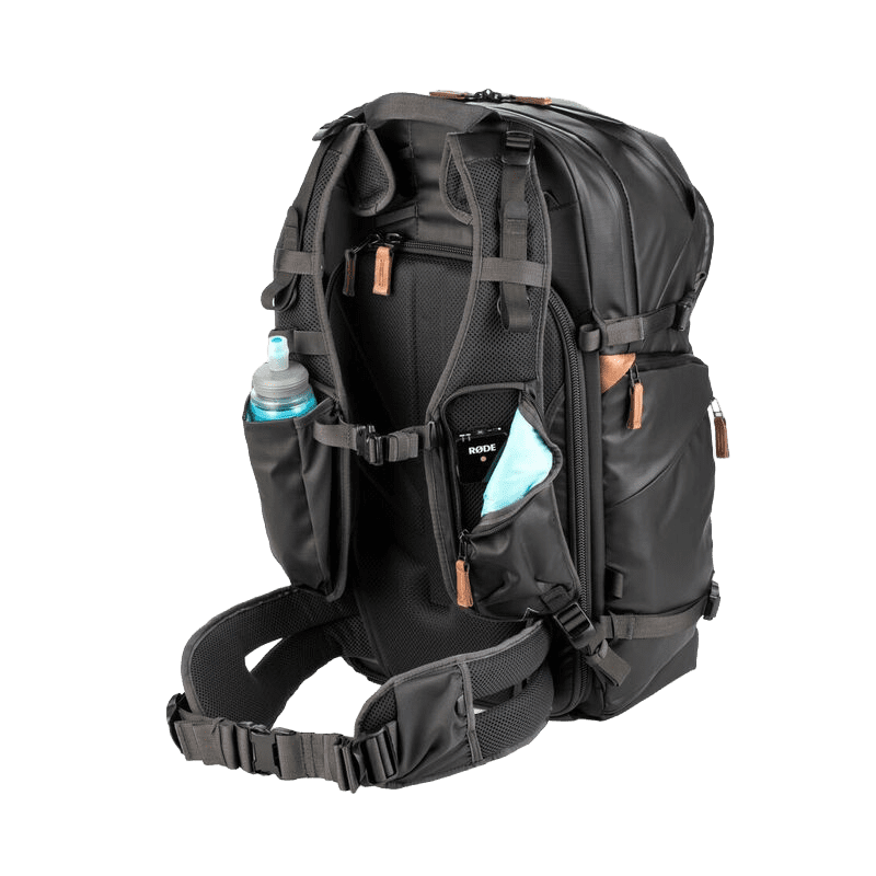 Der Rucksack bietet Zugriffsmöglichkeiten auf der Rückseite und an der Seite. Die seitliche Öffnung ist ideal für den schnellen Zugriff unter dem Arm, ohne den Rucksack komplett abnehmen zu müssen, und die diebstahlsichere hintere Öffnung ermöglicht einen breiten, ungehinderten Zugriff auf den Großteil der Ausrüstung in weniger zeitkritischen Aufnahmesituationen.