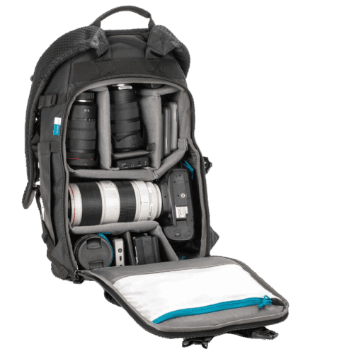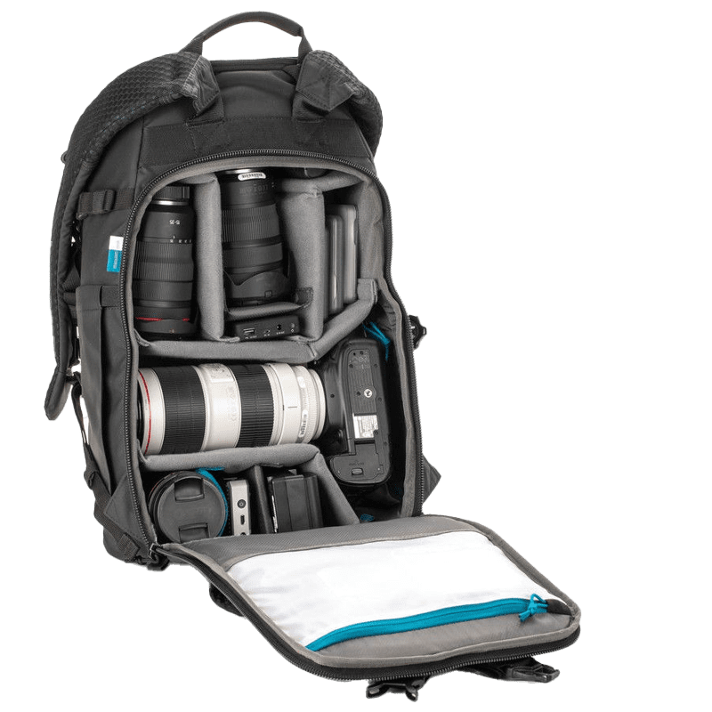 • Kamera-/Laptop-Kapazität – 1-2 spiegellose oder DSLR-Kameras mit 5-7 Objektiven, bis zu 300 mm 2.8, sowie ein Laptop bis zu 14 Zoll (35 cm). Passt auch für DJI Mavic und andere kompakte Drohnen.