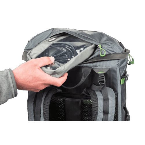 • Erweiterbare Kameratasche – kompatibel mit Stash Master Fotoeinsätzen (optional für 34L & 50L+).