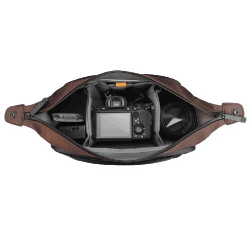 Die Veo Lite S7L CM Tasche verfügt über Zubehörtaschen an Vorder- und Seite sowie versteckte Fächer für Wertsachen oder einen AirTag bzw. einen ähnlichen Tracker. Sie bietet außerdem ein ausziehbares Flaschenfach und Befestigungsgurte am Boden zur Anbringung eines Reisestativs und ist somit äußerst vielseitig.
