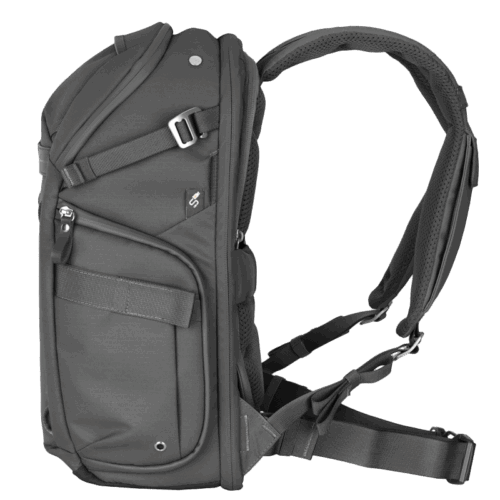 Erweiterbare Seitentaschen und viel PlatzDer Rucksack bietet außerdem mehrere Aufbewahrungstaschen. Erweiterbare Seitentaschen für eine Wasserflasche oder ein Stativ. Versiegelte Taschen an der Innenseite der oberen Klappe für SD-Karten und Zubehör, während die versiegelten Taschen an der Außenseite der Klappe und an der oberen Vorderseite des Rucksacks für andere Gegenstände verwendet werden können. Eine erweiterbare Tasche für ein Smartphone befindet sich am rechten Schultergurt und ein Kamera-Anschlussgurt am linken Schultergurt (Kameraclip nicht im Lieferumfang enthalten). Außerdem sind Gurte zur Befestigung an der Vorderseite der Tasche enthalten, um zusätzliche Gegenstände wie eine Jacke zu befestigen.